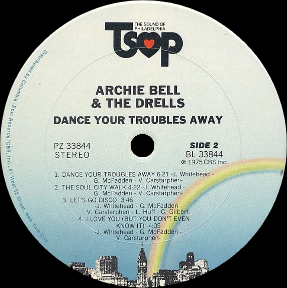 Si " Dance Your Troubles Away " d'Archie Bell & The Drells est le quarante troisième album du label , cet lp est le premier que le groupe enregistre pour Philadelphia International Records , mais aussi leur quatrième album . Il est édité en Amérique sur TSOP Records ( sous label de Philadelphia International Records ) avec une référence de Philadelphia International Records PZ 33844 / PZ 33844 Promo / PZA 33844 ( 8-Track Cartridge ) [ US ] en Novembre 1975 , en Grece sur le label Epic Records PIR 81161 [ GR ] , en Australie sur le label Philadelphia International Records PL 3007 [ AU ] , au Japon sur le label Philadelphia International Records ECPO 91-PH [ JP ] , au Canada sur le label Columbia TSOP Records KZ 33844 [CA] , en Angleterre sur le label TSOP Records S PIR 81161 [ UK ] et au Mexique sur le label Epic Records LNS 17114 [ MX ] en 1976 . Cet album est enregistré au Sigma Sound Studios de Philadelphie , Pennsylvanie sous la direction de Jay Mark , Jim Gallagher , Joe Tarsia et Kenny Present . Les vocaux sont assurés par Archie Bell , James Wise , Lee Bell et Willie Pernell ; les arrangements sont de Gene McFadden , John Whitehead et Victor Carstarphen ( A1 et B1 ) , Ronnie Baker ( A2 ) , Ron Kersey ( A3 ) , Bobby Martin ( B2 et B3 ) et ( Dexter Wansel ( B4 ) . La direction artistique est assurée par Gerard Huerta , assisté du photographe Al Clayton et la production de l'album est répartie entre Bunny Sigler ( A2 , A3 ) , Gene McFadden , John Whitehead et Victor Carstarphen ( A1 , B1 , B2 , B4 ) et Kenny Gamble ( B3 ) , Leon Huff ( A1 , B1 à B4 ) . J'ai ajouté à cet album les singles extraits de celui ci , des version courte et longues , mais surtout " King Of The Castle " qui ne figure sur aucun album du groupe .