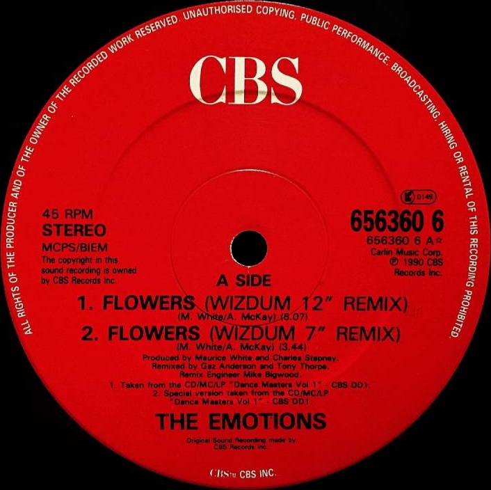 Le troisième album des Emotions ; " Flowers " est édité en Amérique sur le label Columbia Records PC 34163 [ US ] en 1976 . Il parait également au Canada sur le label Columbia Records PC 34163 [ CA ] , au Brésil sur le label CBS Records 137.970 [ BR ] , au Japon sur le label CBS Sony Records 25AP 331 [ JP ] , en Nouvelle Zélande sur le label CBS Records SBP 234890 [ NZ ] , en Australie sur le label CBS Records SBP 234890 [ AU ] , à Taïwan sur le label Liming Records LM-2760 [ TW ] et en Angleterre sur le label CBS Records S CBS 81639 [ UK ] la même année . Un très bon album de Disco Funk , Disco Soul , Soul Music et de Soul Gospel avec toujours ces voix de Ouf ( j'en tremble ) .
